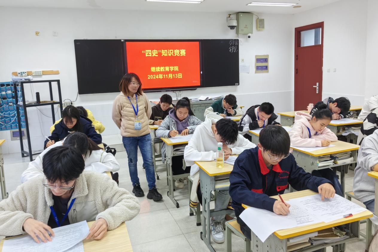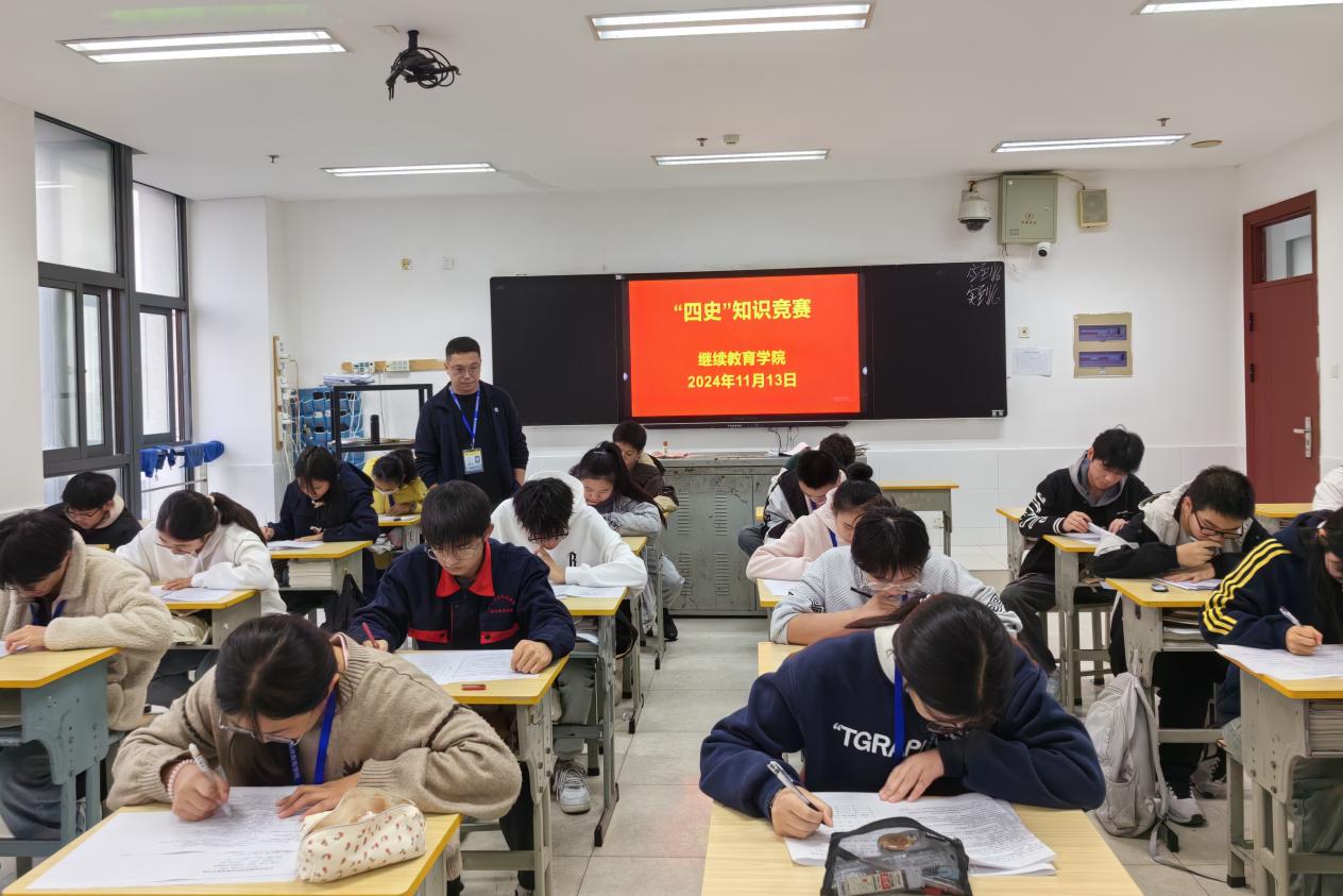 11月13日下午,继续教育学院在文港路校区研发北楼604教室举行“四史”知识竞赛。学院学管科科长兼团总支书记张堃主持,23、24级共28名选手参加竞赛。