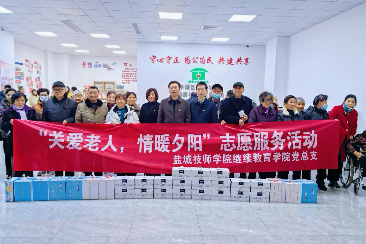 12月4日下午,继续教育学院党总支走进盐城先锋街道剧场路社区开展“关爱老人,情暖夕阳”志愿服务活动。亭湖区先锋街道办事处副主任朱立龙,学院党总支书记、院长金纯峰出席活动,党员和入党积极分子参加。