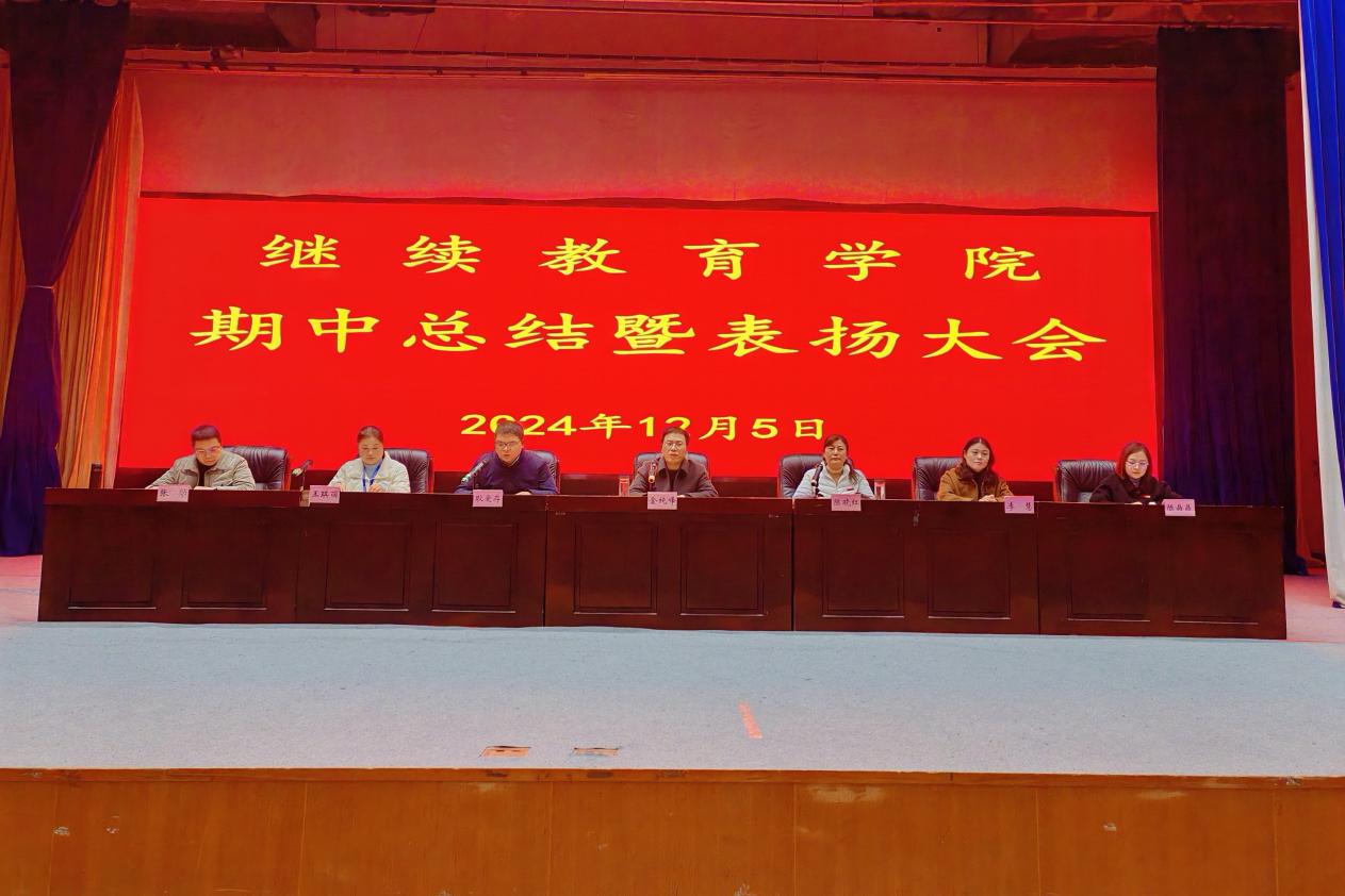 12月5日下午,继续教育学院在文港路校区二楼学术报告厅举行期中总结暨表扬大会。学院党总支书记、院长金纯峰出席并讲话,副院长陈晓红总结期中阶段性检测情况,副院长耿爱存主持大会。