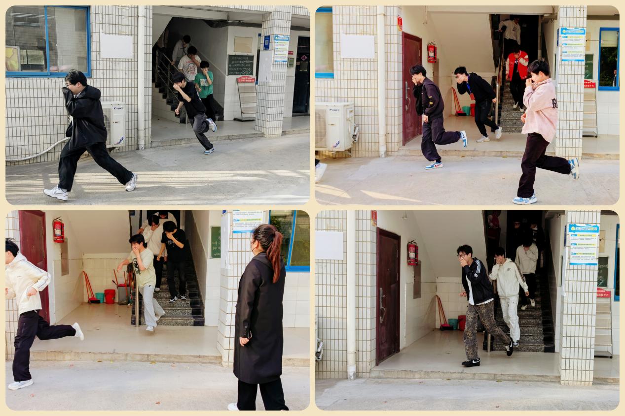 下午4时30分,随着警报声响起,演练正式启动。各岗位人员迅速到位、各司其职,所有学生立刻停止一切活动。演练在教学区和宿舍区先后进行。全体师生按照“掩口鼻、低身姿、分批次、按序行”的要求,沿指定路线向东校园操场紧急疏散。各楼层引导员严守岗位,维持秩序,确保撤离过程零拥堵、零意外。